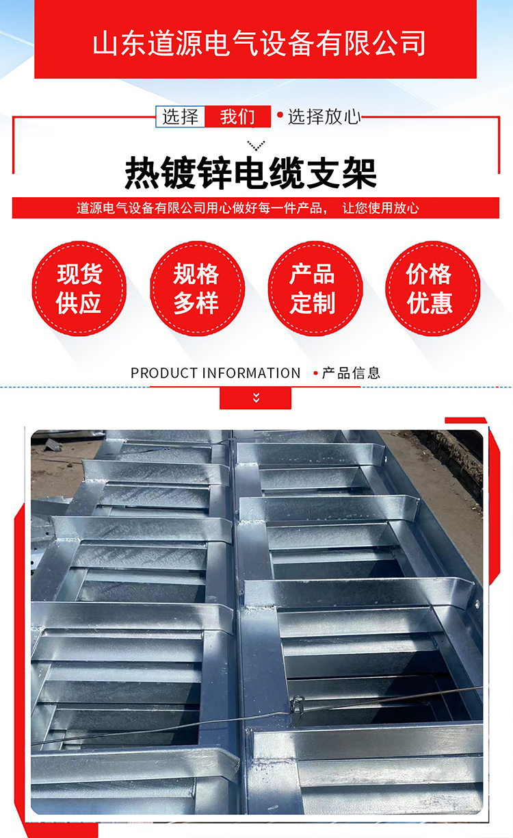 山東道源電氣設(shè)備有限公司位于山東、河北、河南三省交接地段,美麗的江北水城-運河古都 聊城,交通便利。我公司的橋架產(chǎn)品廣泛用于練油、化工、食品、紡織、機械、冶金、高層建筑、電力通訊、廣播等工礦電纜橋架室內(nèi)外電纜架空放設(shè),也可作為電纜溝電纜遂道內(nèi)支架使用。